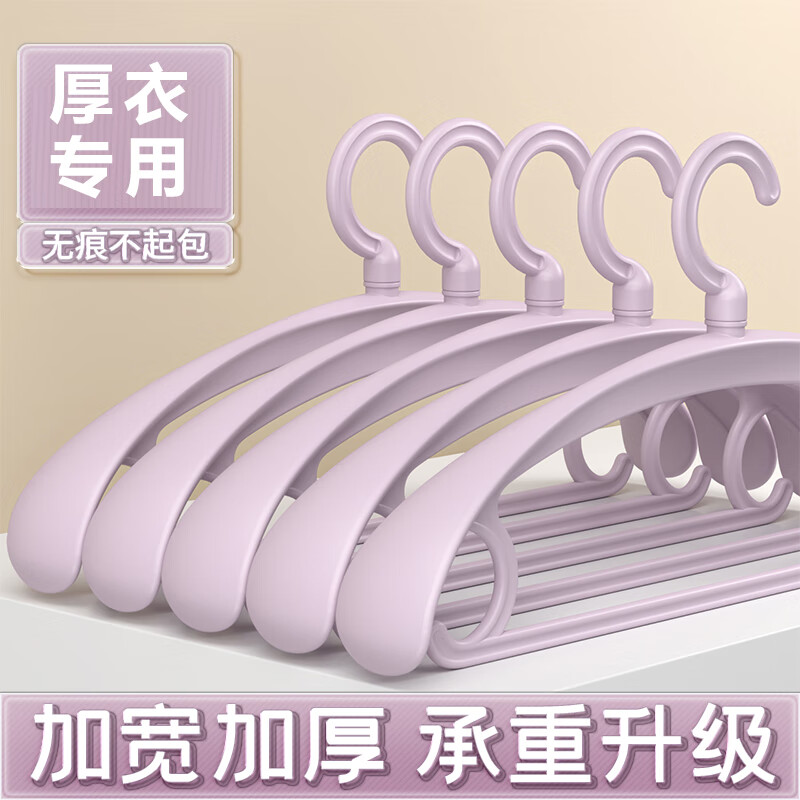 向泽宽肩衣架家用衣挂衣服衣架重衣服撑子秋冬加宽挂厚衣服衣架 【魅惑紫】宽肩防滑无痕加宽 十只装(省心宿舍装)
