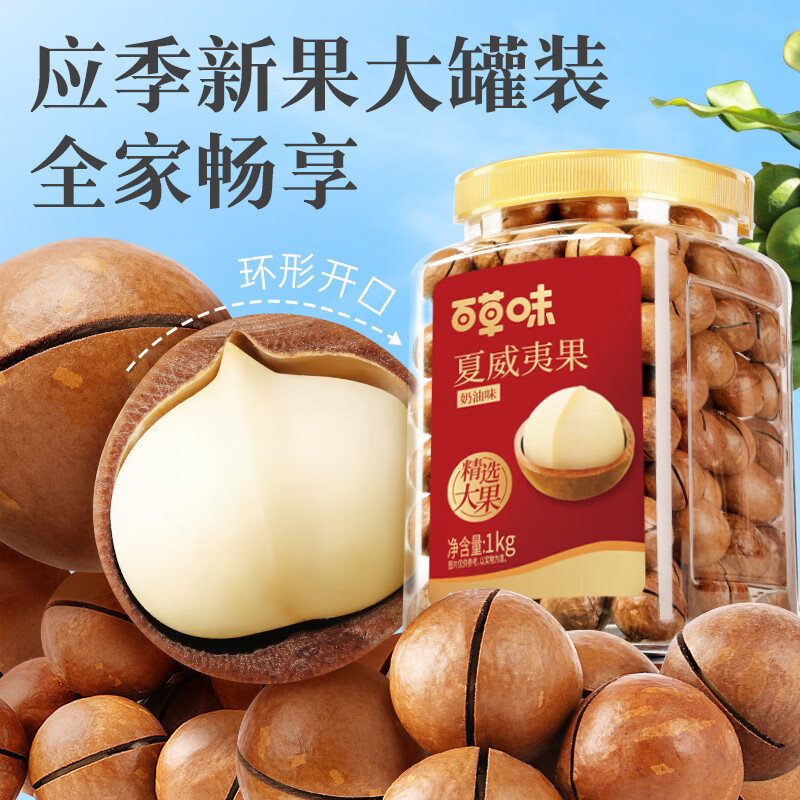 百草味夏威夷果奶油味1kg 坚果炒货干果每日坚果大果罐装休闲零食团购
