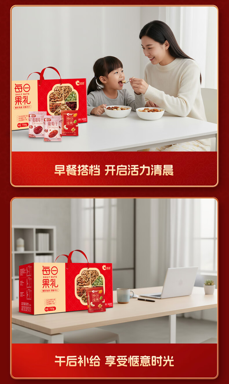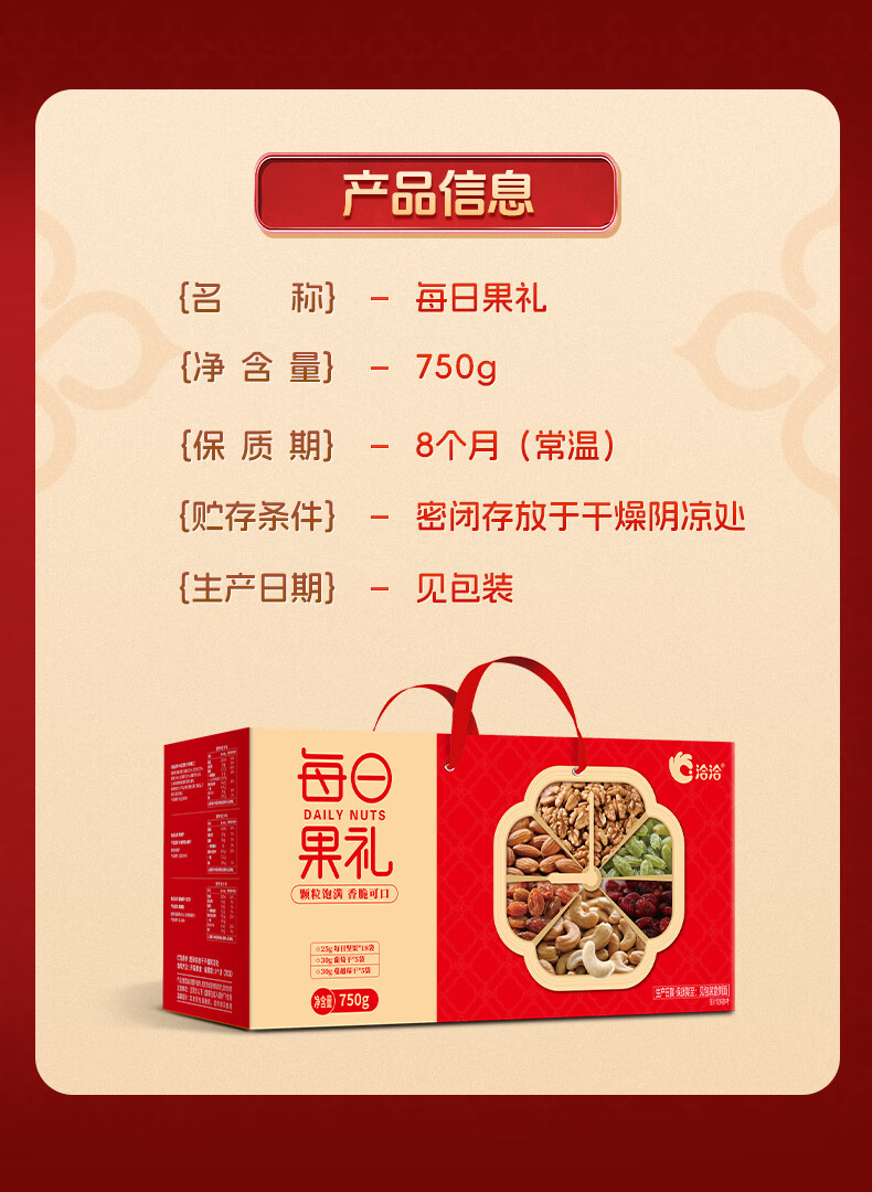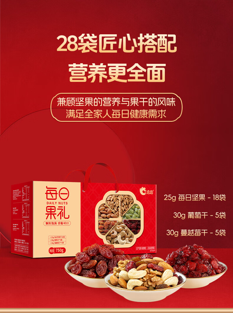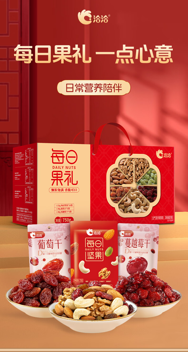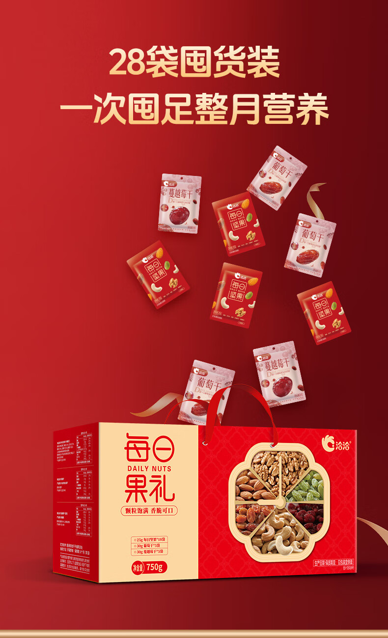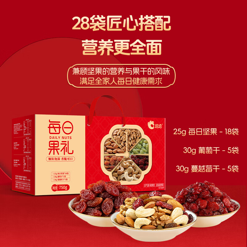 洽洽每日坚果750g/28袋果干混合坚果休闲零食大礼包干果炒货节日礼盒