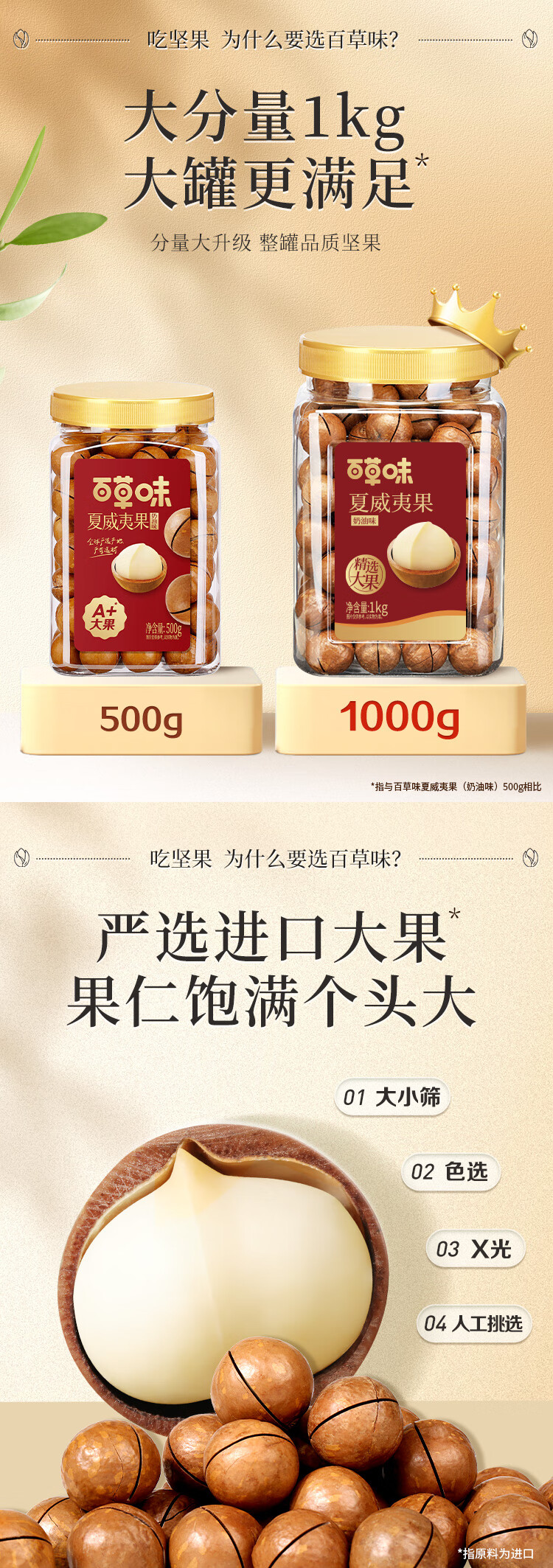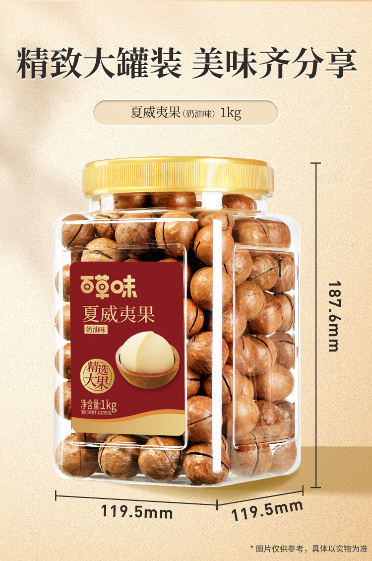 百草味夏威夷果奶油味1kg 坚果炒货干果每日坚果大果罐装休闲零食团购