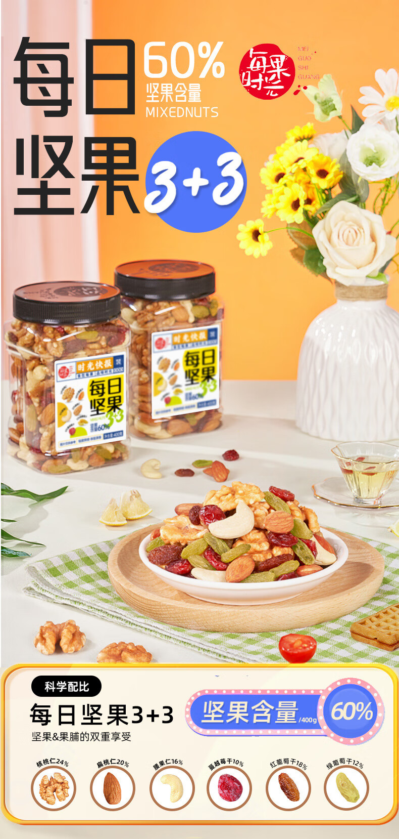每果时光每日坚果400g原味罐装混合坚果炒货蔓越莓干干果孕妇休闲零食