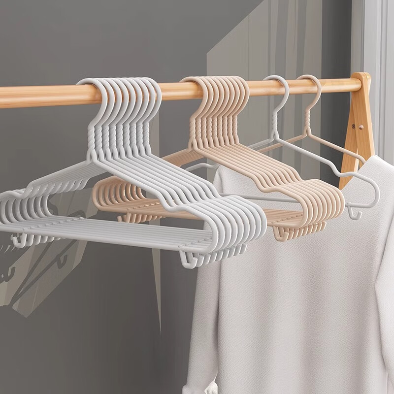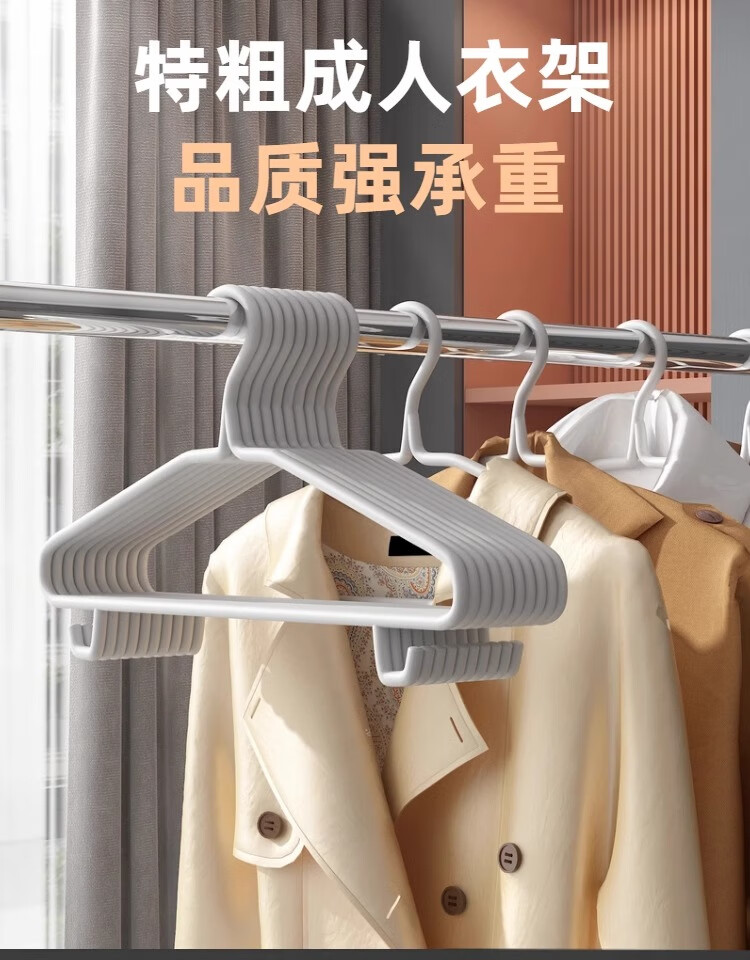法洁诺衣架加粗加大挂衣服家用挂衣成年人晒衣服撑子宿舍用学生无痕防滑 【新升级凹带钩】45cm浅灰色 10支 【特粗款】